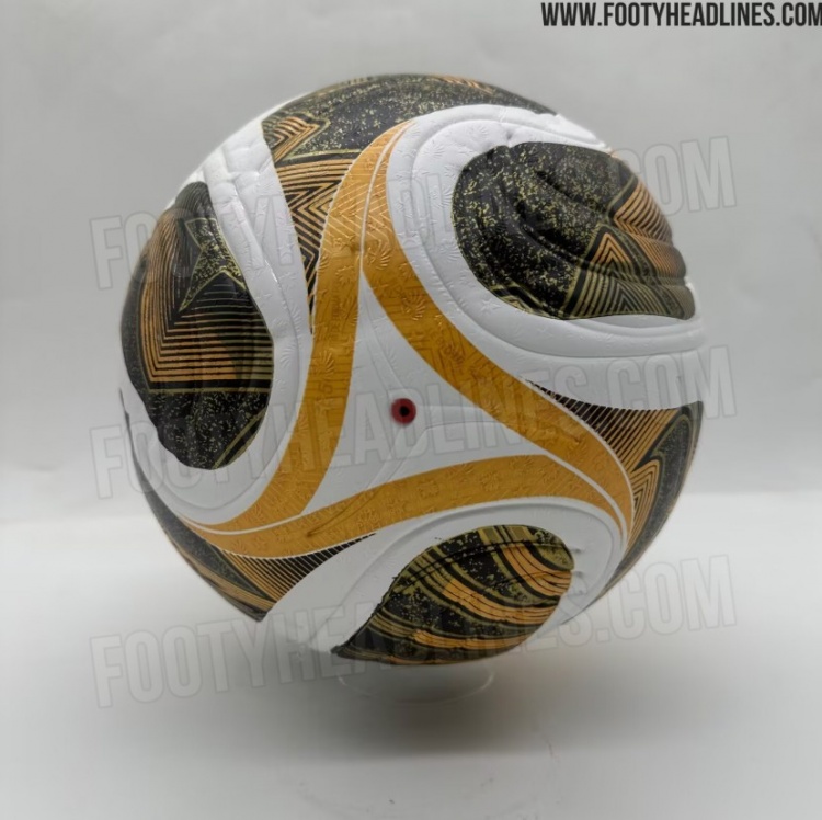 阿迪达斯2026年世界杯决赛用球以经典的白色为底,搭配金色和黑色细节。自2006年柏林世界杯决赛用球以来,金色一直是阿迪达斯世界杯决赛用球的传统配色。在这款足球上,2026年世界杯logo以及阿迪达斯logo都十分醒目。阿迪达斯世界杯决赛用球将于7月正式发布,并将至少从半决赛开始使用。
